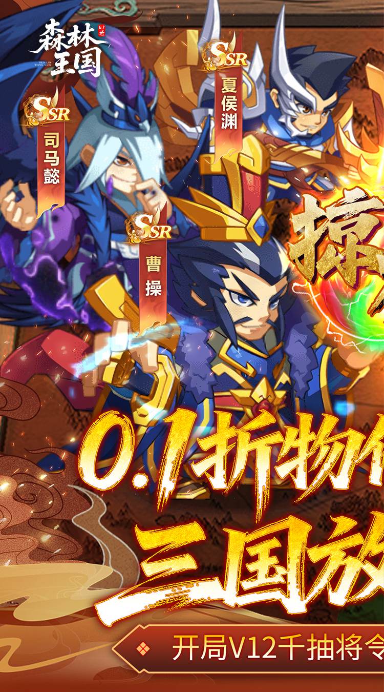 三国萌动,挂机封神!Q萌三国挂机卡牌《森林王国(0.1折日送三千免费版)》全新版本重磅来袭,以Q萌画风还原乱世三国,融合轻松护肝的放置挂机玩法,打破传统三国卡牌的肝度与氪金壁垒,0.1折福利拉满、豪礼不停歇,邀各位主公集结三国名将,奔赴热血又休闲的三国战场。在这里,登录即送特权V12,解锁超多便捷功能,开局直接躺赢;上线再领千抽名将令、千抽神魔令,抽卡嗨不停,轻松集齐三国名将、神魔强者;首充仅需小额投入,即可解锁五虎上将关羽,战力逆天、佛挡杀佛神挡杀神;放置挂机、护肝养肾,离线也能稳步发育,无需熬夜肝度,碎片时间就能称霸三国,主公们,快来三国世界尽情厮杀,书写属于你的萌系三国传奇!