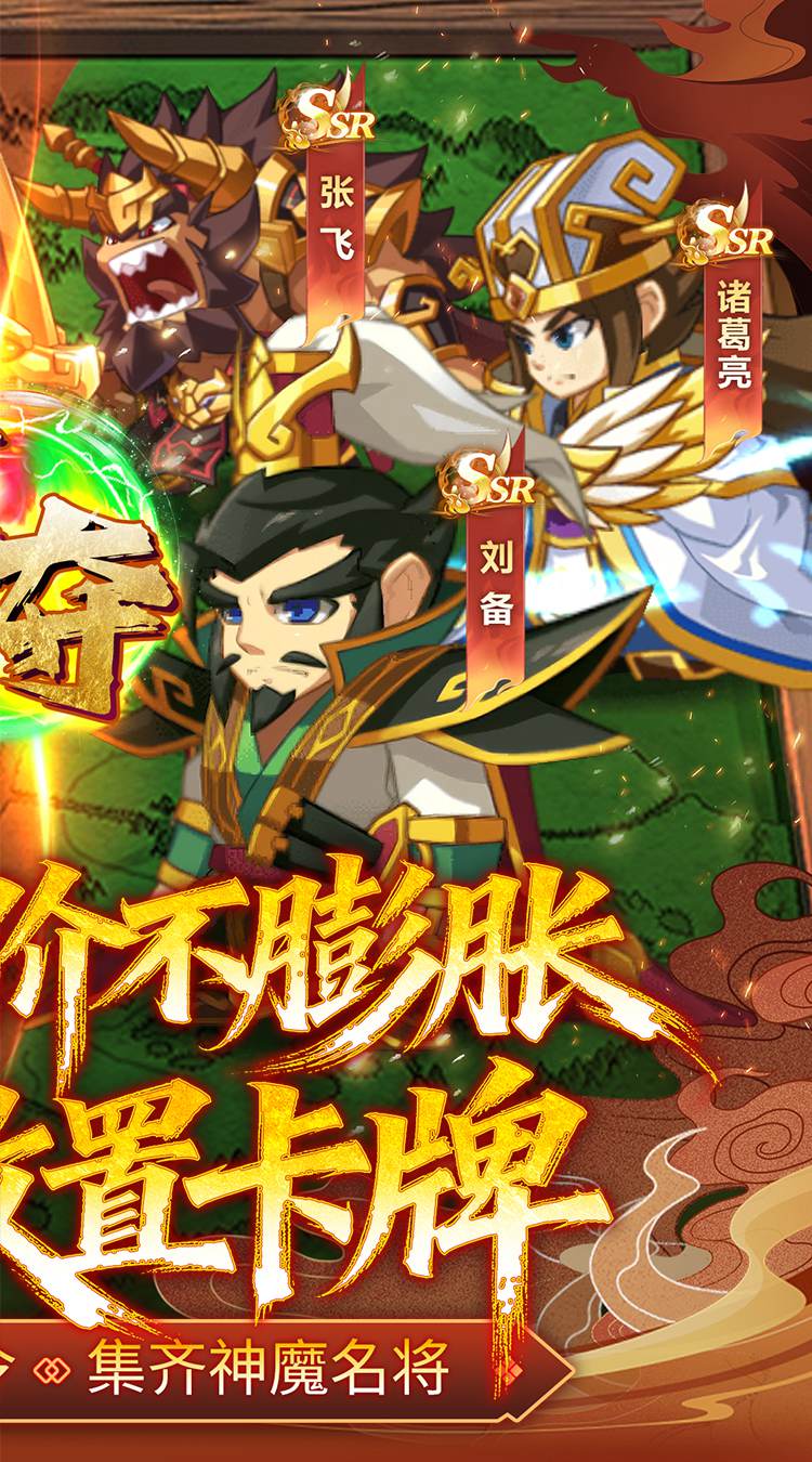 打破三国卡牌抽卡内卷困境,上线即送千抽名将令、千抽神魔令,双重千抽福利嗨不停,抽卡无上限、不套路,让每一位主公都能轻松集齐心仪三国名将,解锁多元阵容搭配,告别“抽卡难、集将慢”的困扰。千抽名将令可精准抽取三国经典名将,曹操、刘备、孙权、诸葛亮等家喻户晓的强者悉数登场,涵盖输出、防御、辅助、控制等全定位,满足各类阵容搭建需求;千抽神魔令可解锁强力神魔武将,搭配三国名将,打造战力天花板阵容,轻松碾压各类战场。