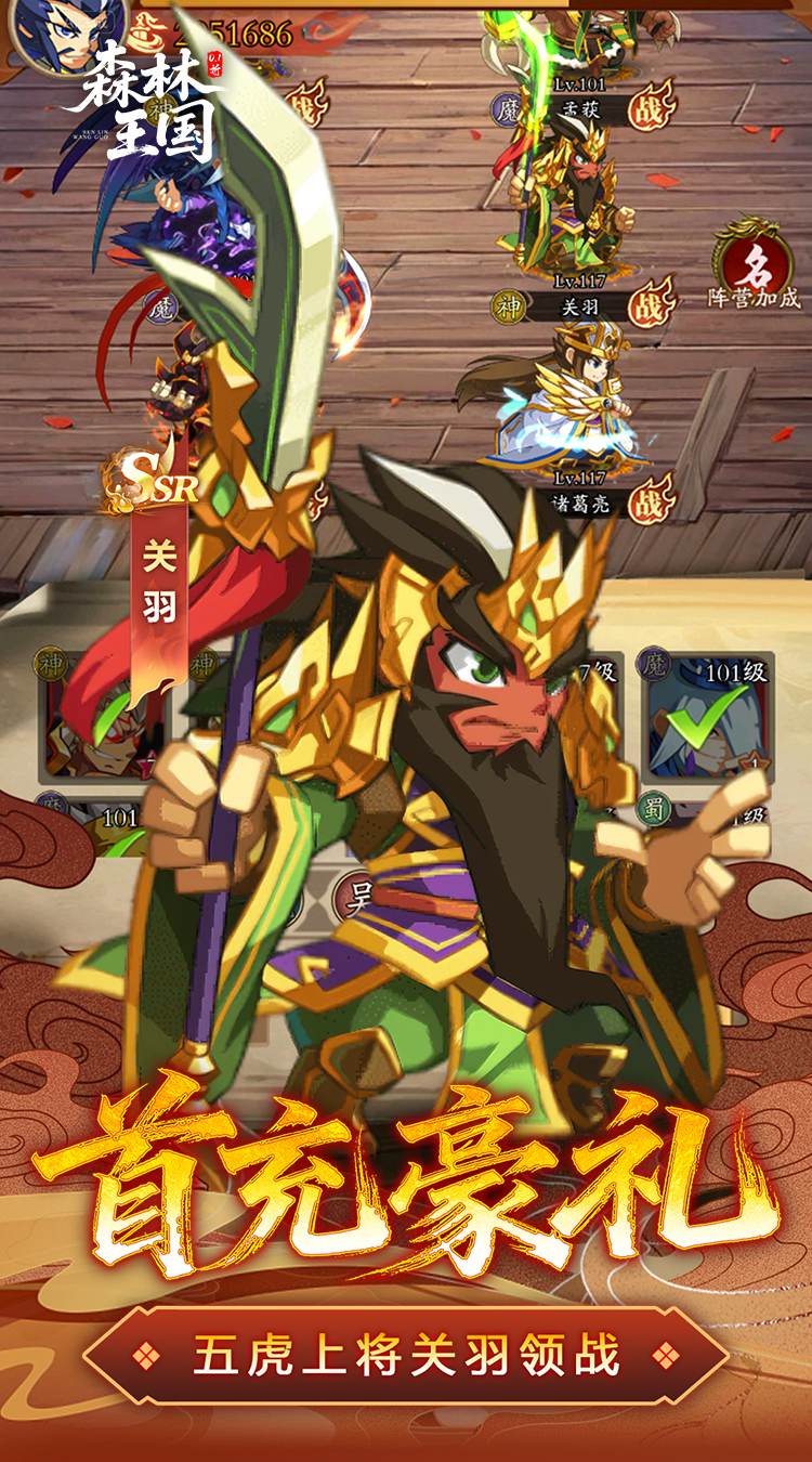 《森林王国(0.1折日送三千免费版)》:Q萌三国挂机,千抽神将,0.1折爽玩不肝